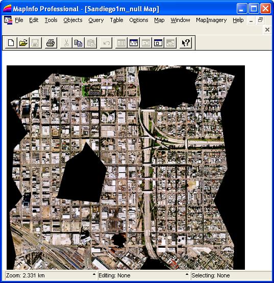 7. MapInfo should now display the image, and if there is an alpha layer in the JP2 file,